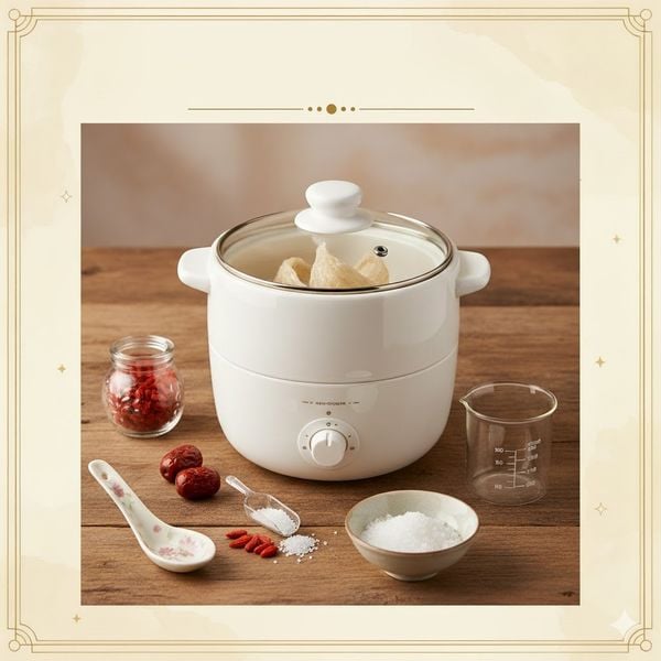 Ưu tiên thố thủy tinh, sứ, hoặc nồi chưng chuyên dụng có nắp kín