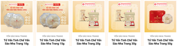 - Yến chưng sẵn: Hàm lượng yến cao, đa dạng vị (đường phèn, nhân sâm, đông trùng hạ thảo)