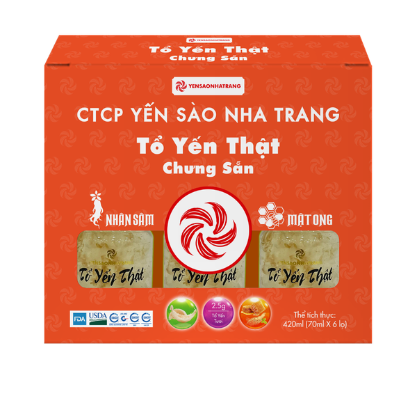Tổ Yến Thật Chưng Sẵn - Nhân Sâm Mật Ong 2,5g (Hộp 6)